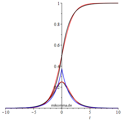 auch bekannt als logistische Funktion , oder kumulative logistische Verteilung (bzw. Fermi-Dirac-Verteilung - an der Hochachse gespiegelt). also known as logistic function , or cumulative logistic distribution (or Fermi-Dirac distribution - mirrored at the vertical axis). Mit der Ableitung (= vom Dipol abgestrahlte Leistung): With the derivative (= power radiated by the dipole):