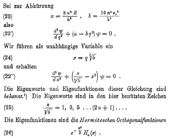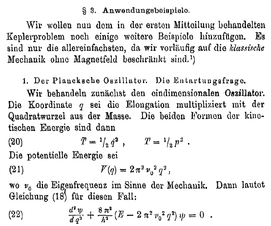 Schrödinger schreibt 1926 in seiner zweiten Mitteilung zu "Quantisierung als Eigenwertproblem":