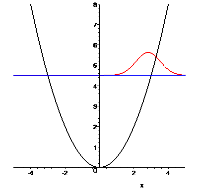 > | plot([u(3,x)+E(3),E(3),V(x)],x=-4..4,color=[red,blue,black]); |